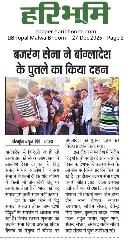 बजरंग सेवा द्वारा बांग्लादेश का पुतला दहन